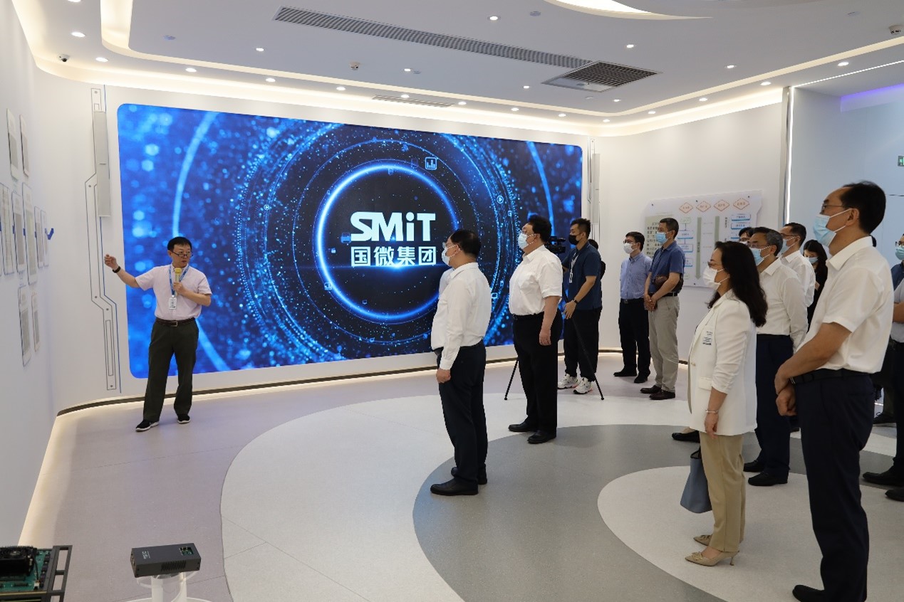 2022 年8月3日下午,深圳市人大常委會黨組書記、主任駱文智,副主任蔣宇揚、秘書長湯暑葵、教科文衛工委主任孫福金、辦公廳副主任馮鍾一行率隊莅臨國微集團開展關鍵核心技術攻關情況調研,一同考察調研的還有深圳市發展和改革委、深圳市科技創新委、深圳市工業和信息化局以及部分市人大代表、市相關行業協會、南山區人大常委會、區政府等相關部門領導。